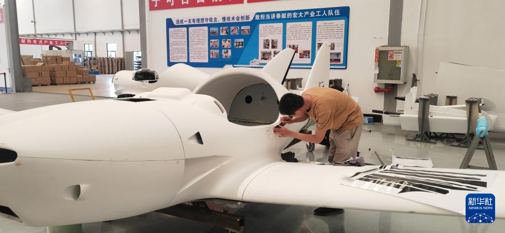 在弥勒浩翔科技有限公司的生产车间,工人正在组装飞机。新华社记者浦超 摄