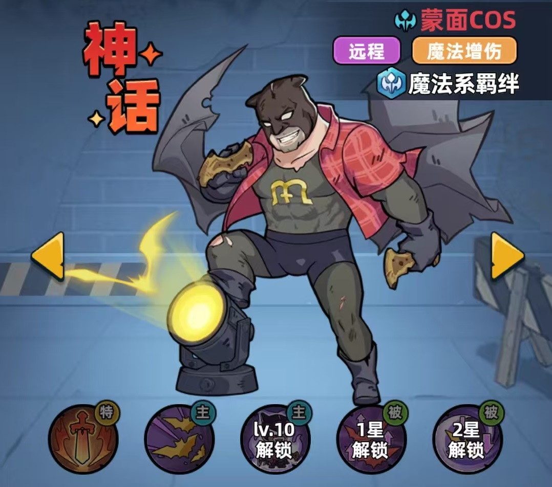 忍术大师是属于这套阵容中的核心输出,他的主动技能可以对扇形范围内的多名敌人造成魔法伤害,同时附加禁疗、炙烤和燃烧。这些状态在战斗中都是非常有用的,效果治疗可以减少目标下一次受到的治疗量,炙烤使目标无法行动,燃烧可以根据层数造成持续伤害。主动技能是开启火盾精通,在持续时间内可以立即释放战技,使燃烧伤害触发间隔降低,也就相当于提升了燃烧所造成的伤害。蒙面COS是属于魔法增伤类型,他是作为忍术大师的副c,主动技能可以释放出蝙蝠,跟随自身和攻击最高的友方目标陪伴一起进行输出,大招是将蝙蝠升级为吸血蝙蝠,造成的撕咬伤害提升。