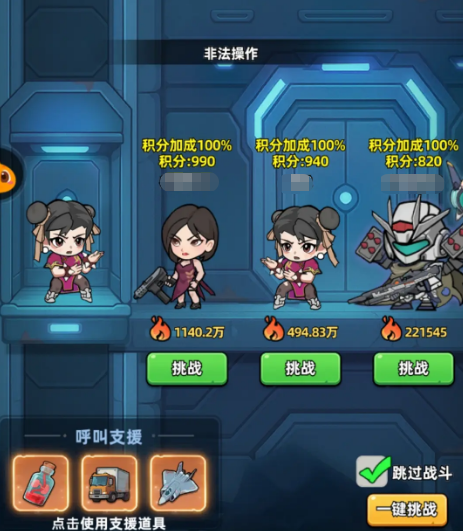 阵容的选择方面,建议大家可以去优先使用高战力角色,利用阵营克制关系提升胜率。推荐2坦克+2输出+1辅助应对多场景战斗,此外关键道具的使用也不容忽视,比如肾上腺素复活全队并重置疲劳值;霉军飞机轰炸敌方使其生命上限降低30%等都是可以的。