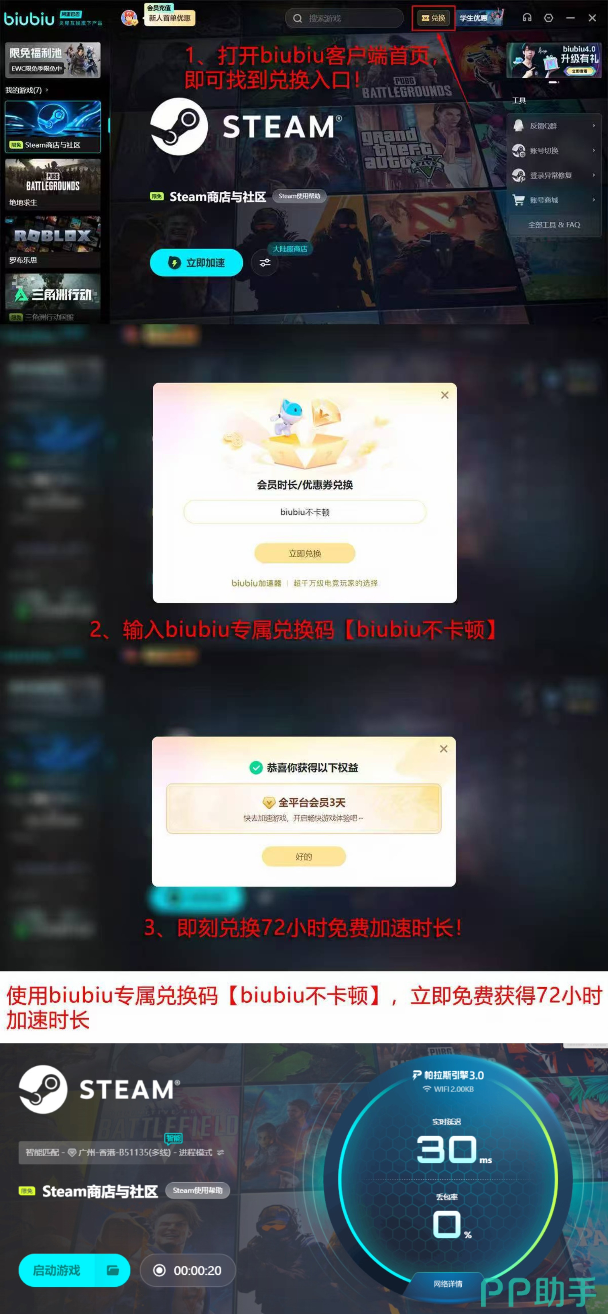 为降低用户尝试门槛,平台开放无限制免费试用机制:新用户完成注册后,系统自动发放1天全功能加速时长。此外,输入专属兑换码【biubiu不卡顿】,还可额外领取3天加速权益,合计享4天零成本体验期。整个流程无需短信验证、人脸识别或绑定支付方式,操作简洁透明。