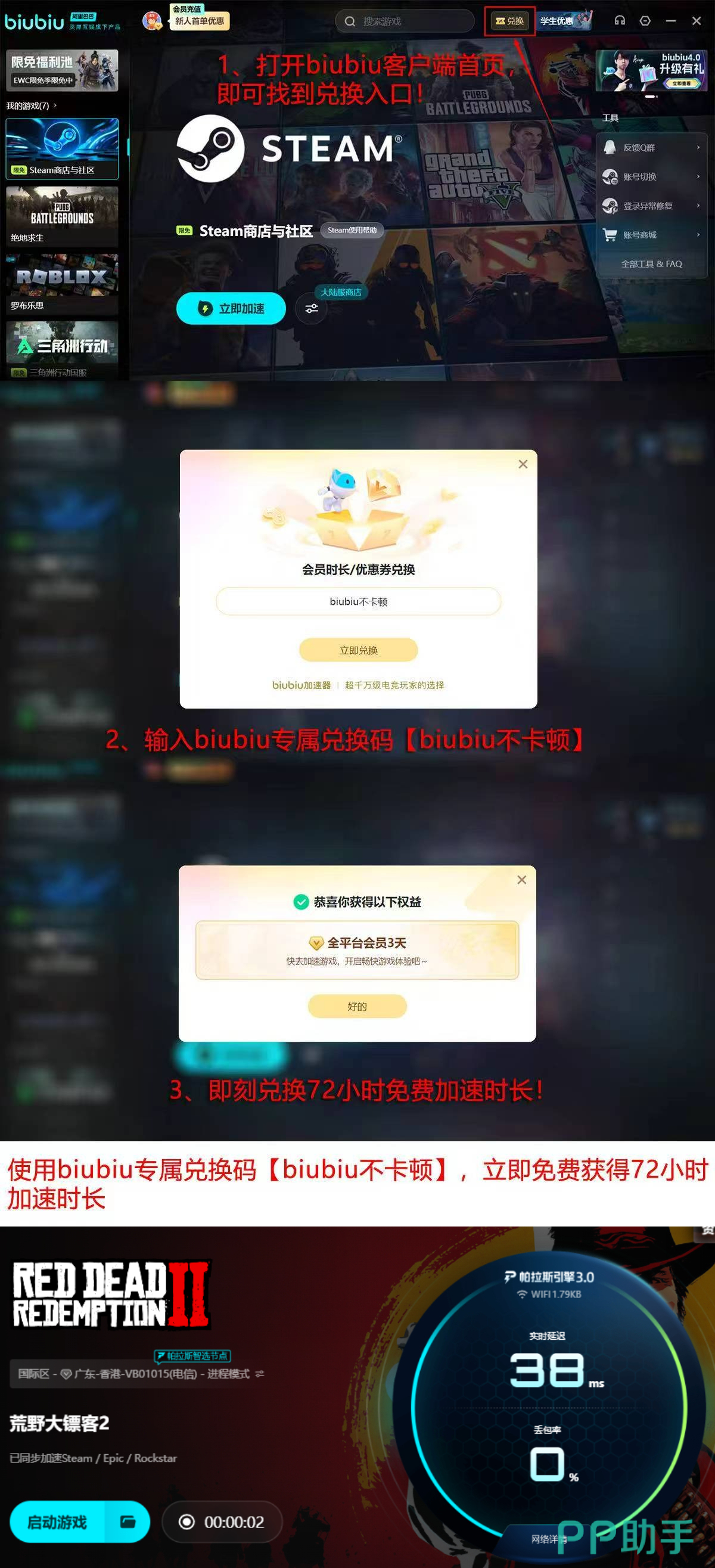当前biubiu平台面向新用户推出限时体验计划:完成基础注册后,自动解锁24小时全功能加速权限;输入激活码【biubiu不卡顿】,即可叠加领取72小时专属加速时长,总计享96小时无限制使用权益。