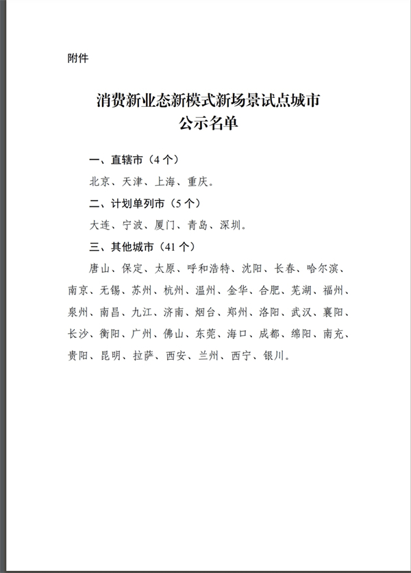 此前,财政部、商务部发布关于开展消费新业态新模式新场景试点工作的通知。试点城市申报范围为地市级及以上城市(包括直辖市,计划单列市,各省、自治区省会或首府城市,地级市、州、盟)。支持50个左右城市开展试点工作,主要向人口基数大、带动作用强、发展潜力好的超大特大城市倾斜。政策实施期为两年。