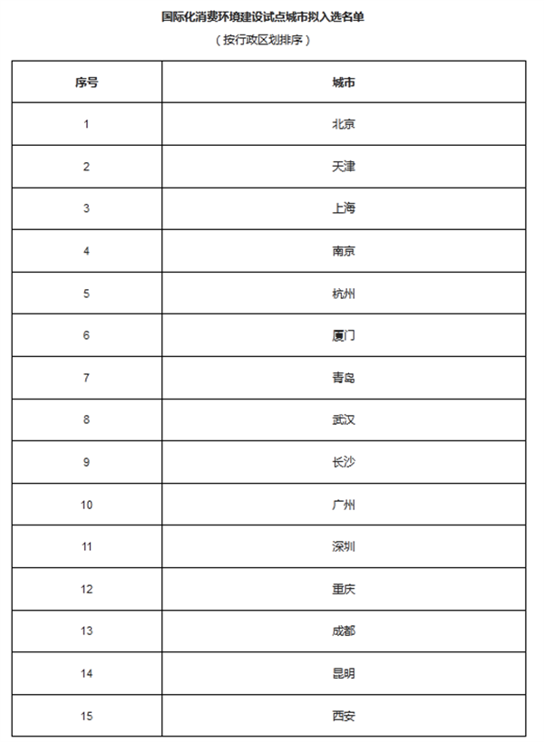 此外,当天,商务部、财政部对国际化消费环境建设试点城市竞争性评审结果进行公示,全国拟确定15个城市纳入试点范围,昆明市入围,公示期为2025年11月20日—2025年11月28日。