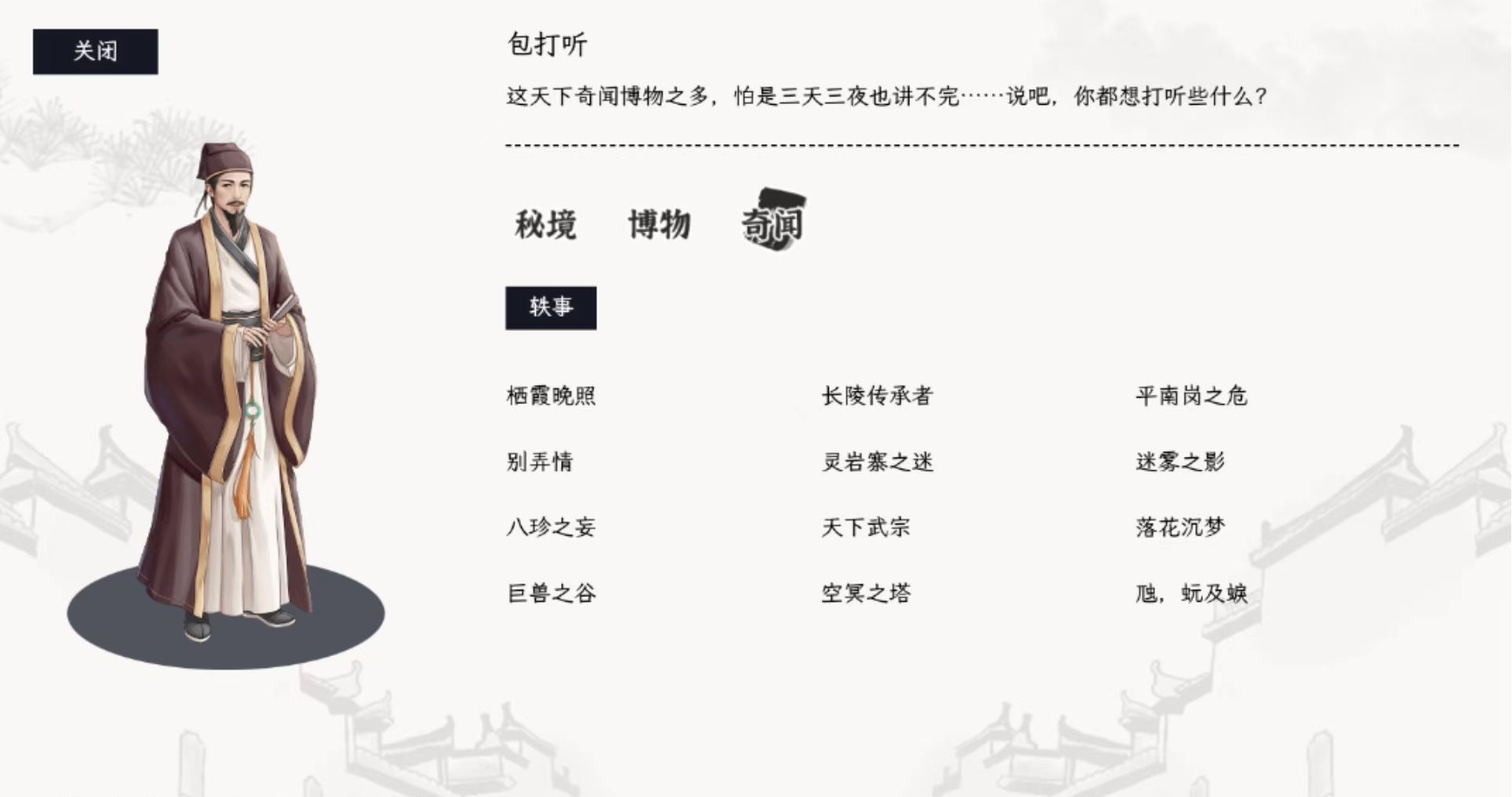 例如可以前往集市区寻找包打听,通过和包打听闲聊来搜集各种线索,逐步拼凑出完整的故事线,在完成之后可以拿到强力道具和装备。更多的部分都是隐藏在江湖的角角落落里,少侠们可以自行前去探索,但是也不用过于刻意去寻找,在探索的过程中就会不经意间触发,这样也增加了游戏在探索方面的神秘感。