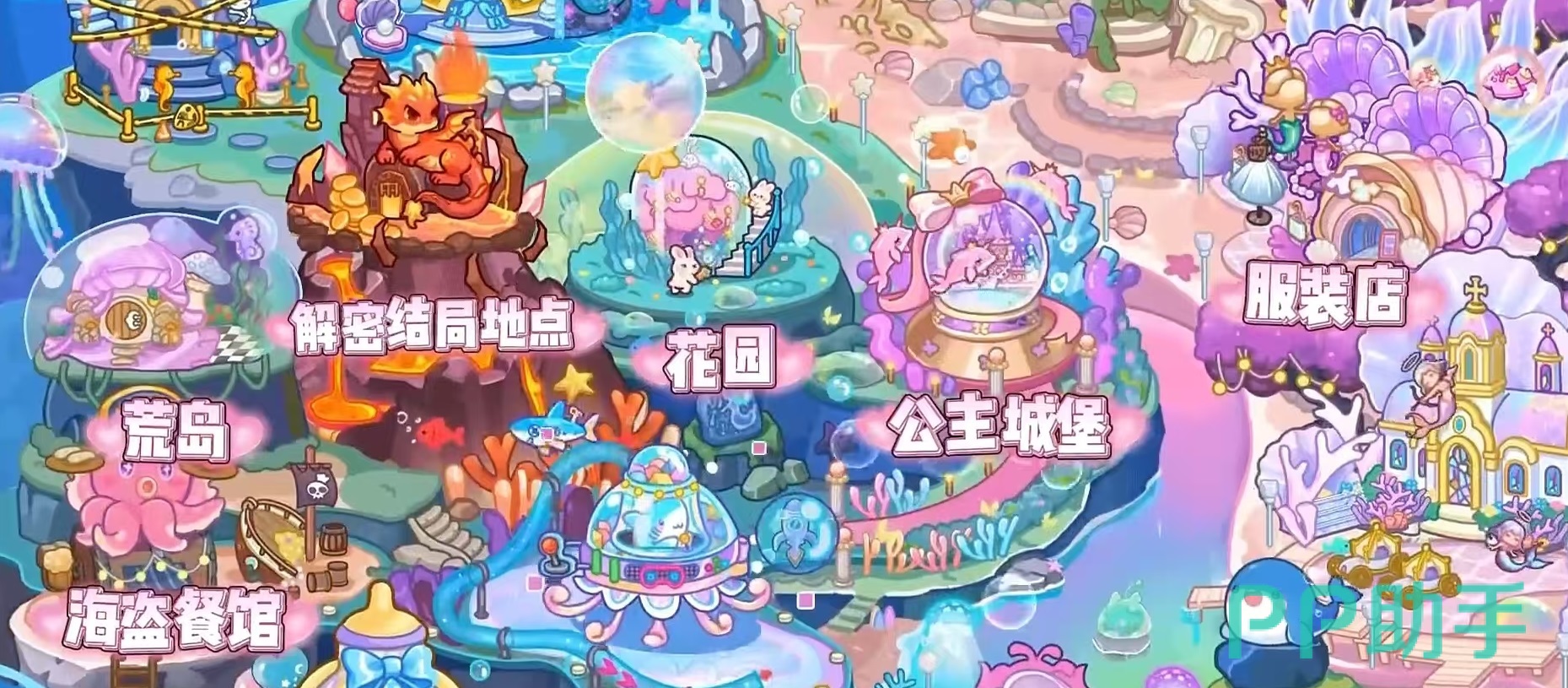 第七个人鱼教堂,在教堂中可以见识到穿越深海的爱情,也可以自己动手精心打扮参加典礼,参与到浪漫的爱情故事中。第八个海盗餐馆,海盗餐馆是在一艘海盗船上,利用捕获的海鲜制作食物,可以在这里制作自己的美味佳肴,也可以开怀畅饮。第九个游戏中心,这里包括复古街机到新潮的电竞玩法一应俱全,玩游戏获取到的兑换券还能兑换奖励。