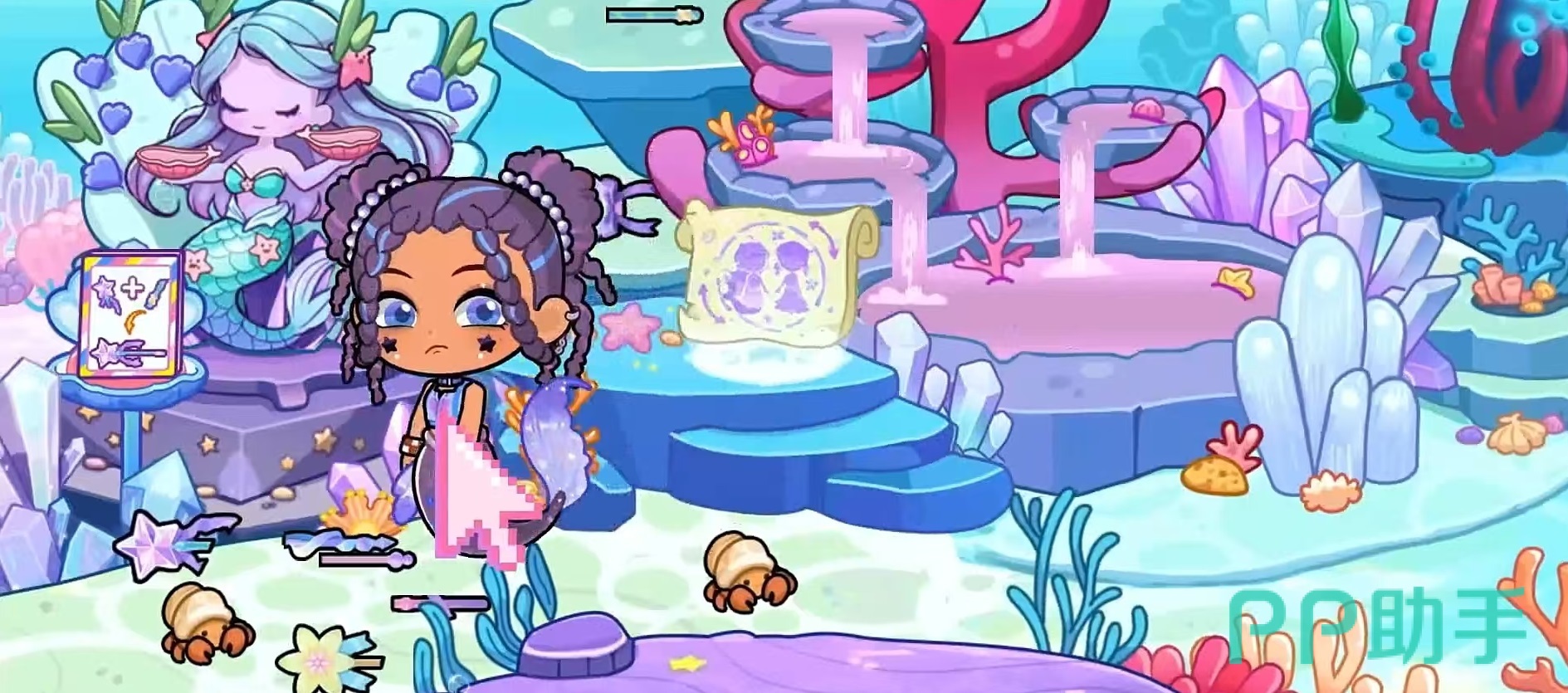 第二个地点是美人鱼之家,这里有很多美人鱼姐妹以及各种各样的海洋小动物,充满着温馨氛围。第三个服装店,服装店中有琳琅满目的商品,包括鱼尾、裙装、配饰等一应俱全,可以在这里尽情的选择自己喜欢的配饰拍照。第四个荒岛,荒岛是一片非常神秘的森林,神秘又富有童话感,很多角色聚集在这片奇幻的森林中。第五个解密结局地点,这里到处都是火山岩浆充满着危机,但也隐藏着尘封的神秘往事,需要玩家根据环境中的线索揭开秘密,拯救被困住的人们。第六个花园,花园是位于海底的一处复活节主题地点,各位玩家可以在这里绘制自己的独特彩蛋。