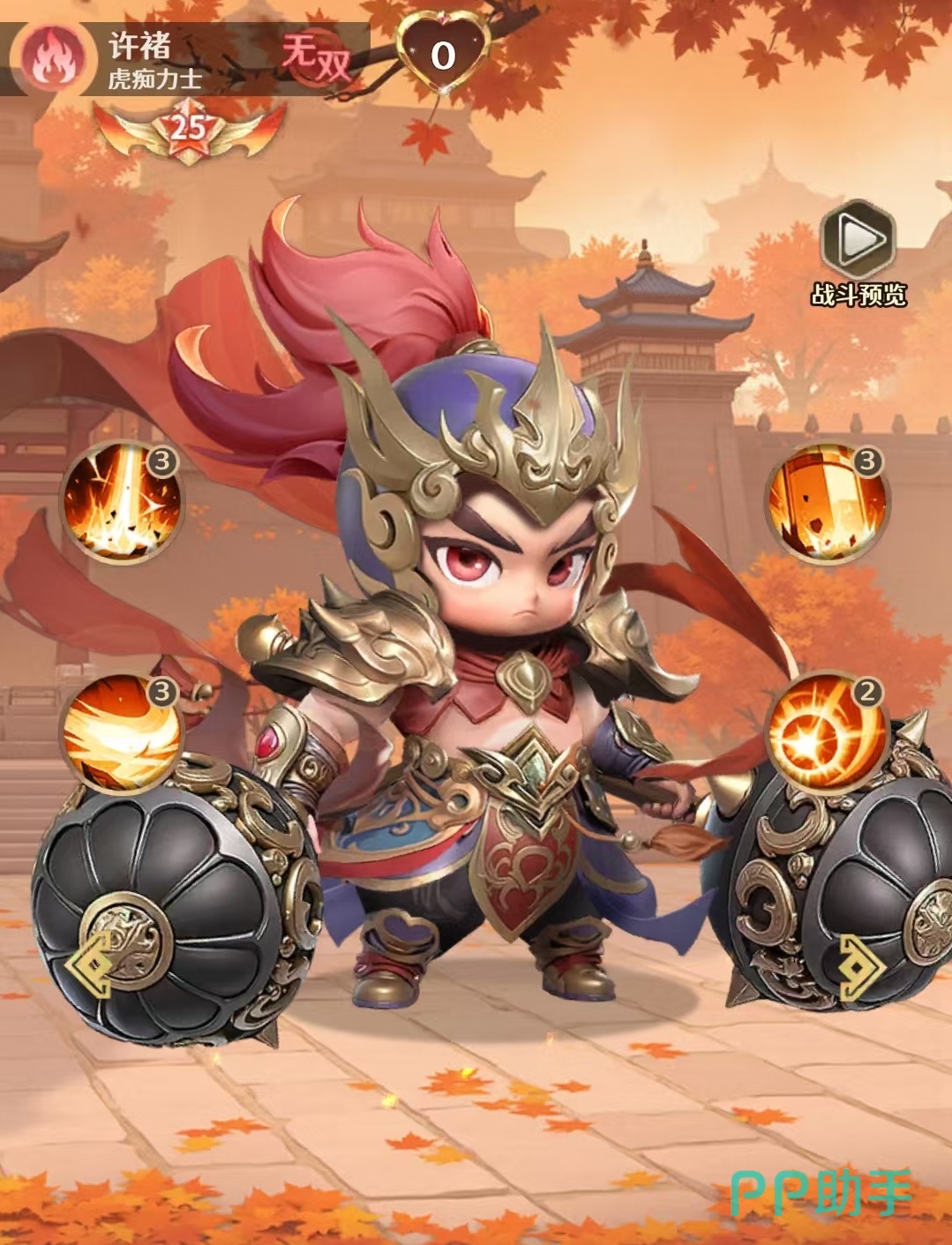 所以周瑜在阵容搭配方面也很清楚,走的就是灼烧路线,搭配的队友也都需要带有类似的效果。小编选择的阵容是蔡文姬、许褚、马超、夏侯惇和太史慈。其中夏侯惇和太史慈在后续可以进行更换更换成更为强势的孙策和孙权等。这套搭配中的主力除了周瑜之外,再就是许褚,许褚的技能具有造成伤害后驱散目标身上的增益状态,为目标添加攻击降低和燃烧等效果,还可以给生命值最低的友方和自身恢复生命值。许褚的大招可以攻击敌方全体,回复自身生命,有几率附加嘲讽,对身上带有燃烧的目标,嘲讽几率翻倍。