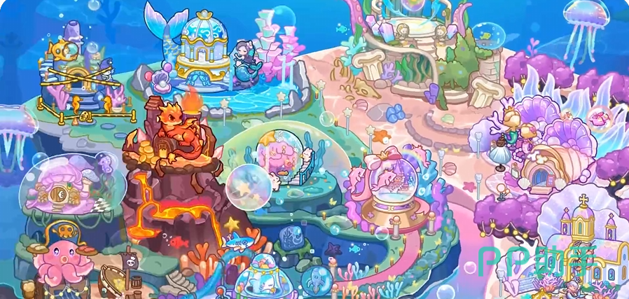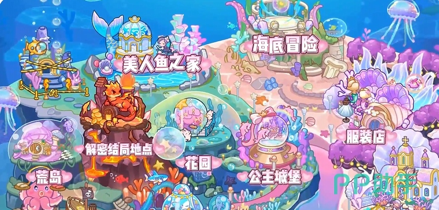 正式进入到游戏界面,就能看到其中的世界地图,有不少地点场景都是能让大家自行探索的,光是在首测的第一个世界地图,就有十几个场景都能游玩,比如海底冒险,美人鱼之家,花园,公主城堡,服装店,海盗餐馆,花园等等。