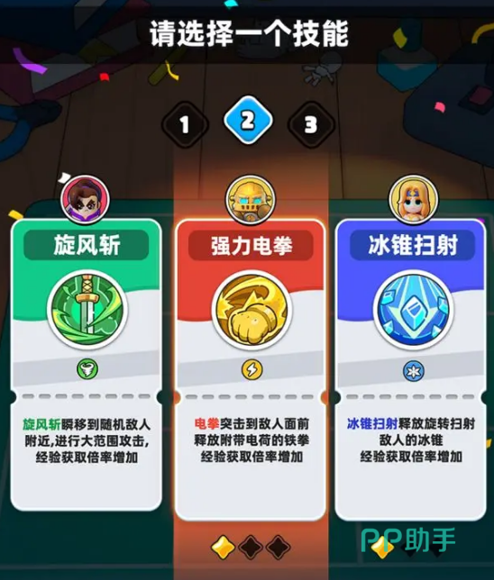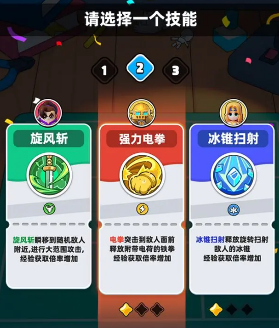 冒险过程中,大家顺利击败怪物升级后,就可以从随机出现的技能卡牌中三选一,技能分为普通技、可觉醒的紫技以及进阶蓝技等,各位要做的就是去根据战局和已有英雄进行选择,除了推进具有随机地图和事件的主线地牢外,还有竞技场和公会boss战等玩法,让玩家可以去根据自身的实际需要以及阵容方面的策略要求来进行改变。