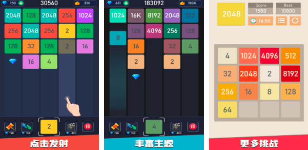 本作在复刻2048核心滑动合并机制基础上,深度拓展策略维度:内置四类功能性道具,辅助玩家突破分数瓶颈;同步提供无限制自由模式与限时闯关模式,兼顾休闲放松与目标驱动型体验;采用漫画风格UI设计,界面明快活泼,数字方块动态反馈细腻,整体视觉表现力显著提升。