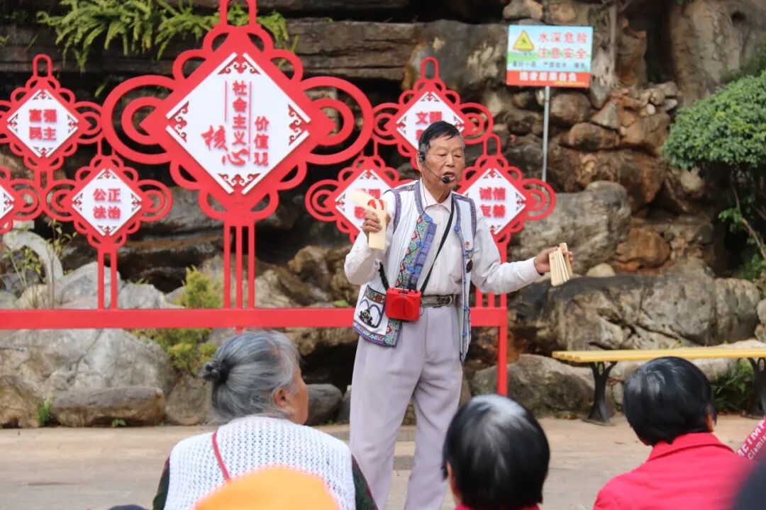作为“红河好人”和退休老党员,金六斤始终坚守初心使命,退休不褪色,积极投身理论宣讲志愿服务。他表示:“希望通过快板这种群众喜爱的文艺形式,把党的好政策、好理论讲清楚、讲明白,让群众真正听得懂、能领会、可落实。”此次宣讲中,他还结合泸西县本地发展实际和社区居民的生活变化,用身边事诠释大政策,让宣讲更具针对性和感染力,切实增强了群众对党的创新理论的认同感和归属感。