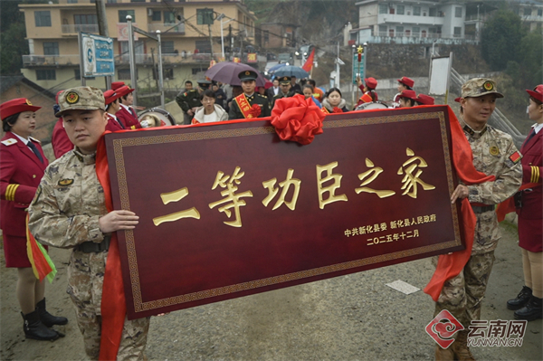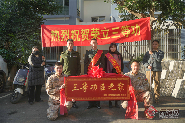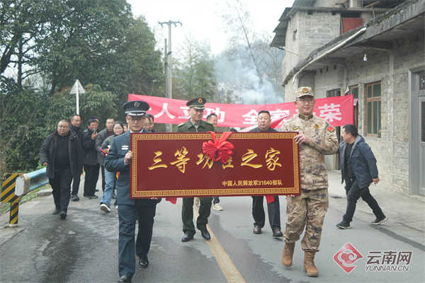 一人立功,全家光荣。近日,南部战区陆军某旅送喜报分队辗转云南、贵州、湖南等省市,联合当地人民武装部、退役军人事务局等单位,为2025年度荣立军功的军人家庭送去立功喜报与牌匾,传递部队组织的深切慰问与关怀,让军功荣耀照亮门楣,在军地之间营造起崇尚英雄、致敬功臣的浓厚氛围。