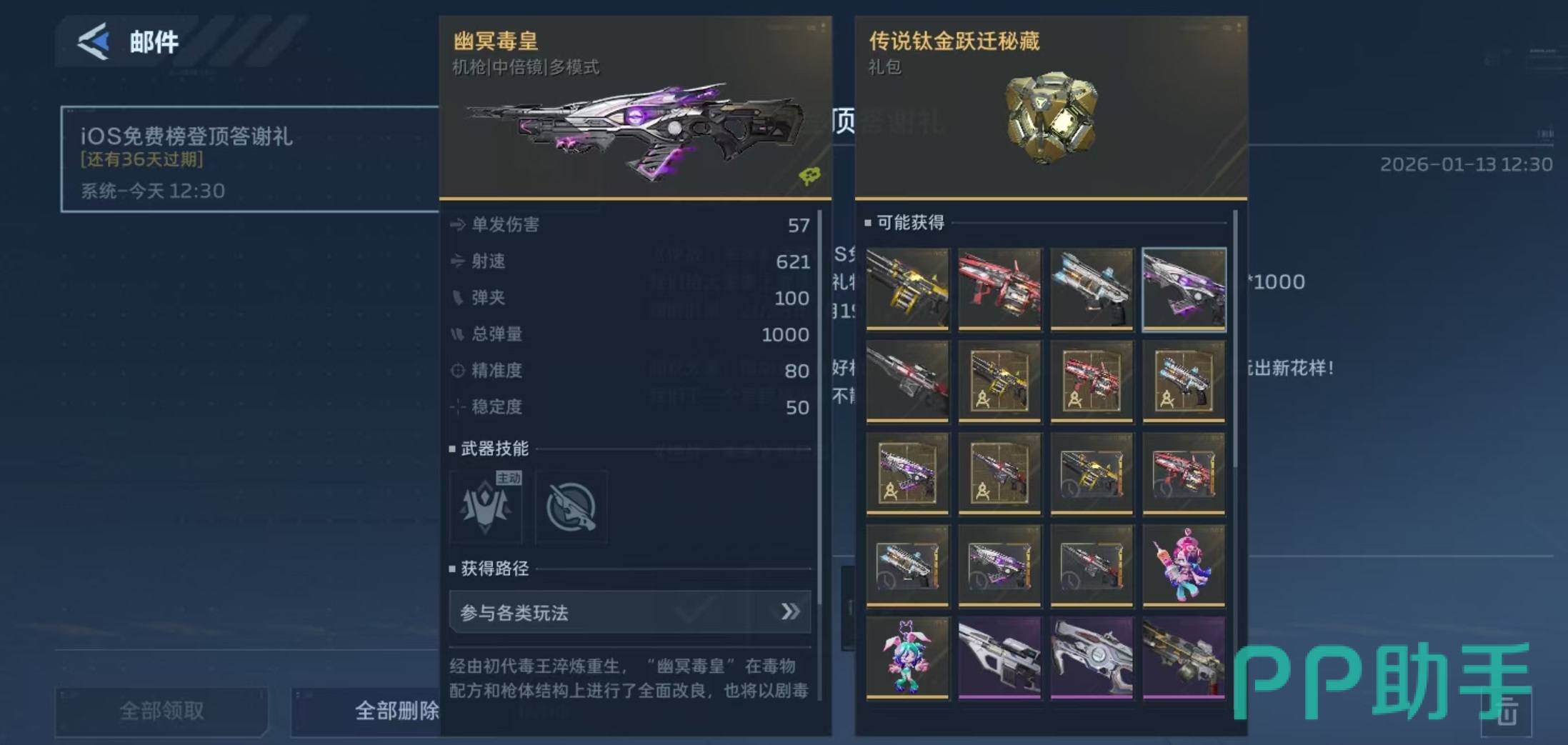 看到这里大家就了解清楚逆战未来幽冥毒皇怎么获得了吧,这是因为获取的途径很多,所以大家运气好或者是愿意投入一些资源,都可以在开服之后直接就能轻松拿到这款武器。如果没有开出或是不想充值也没关系,多打几场战斗积累道具也能兑换出来。